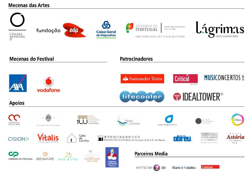 A Fundação Inês de Castro agradece a todos os Mecenas, Patrocinadores, Apoiantes, Parceiros Media e Amigos que tornaram possível a realização da 4.ª edição do Festival das Artes.