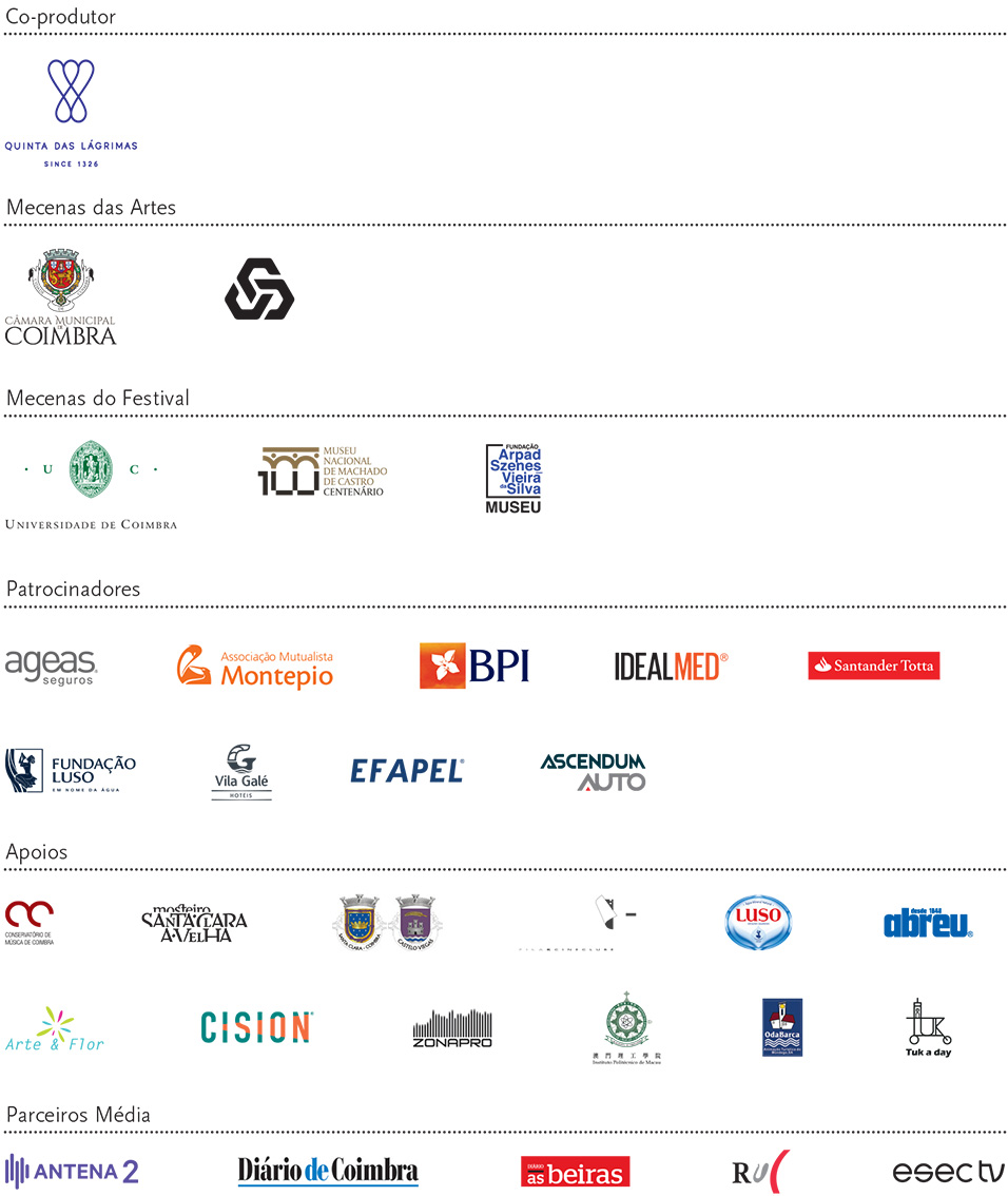 A Fundação Inês de Castro agradece a todos os Mecenas, Patrocinadores, Apoiantes, Parceiros Media e Amigos que tornaram possível a realização da 9.ª edição do Festival das Artes.